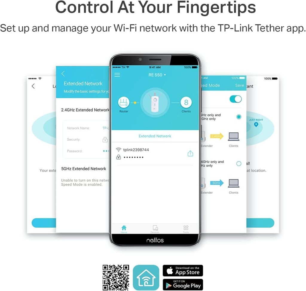 - 𝐄𝐚𝐬𝐲 𝐒𝐞𝐭 𝐔𝐩 𝐢𝐧 𝐌𝐢𝐧𝐮𝐭𝐞𝐬 – Easily set up and manage your WiFi in a few quick and easy steps using the TP-Link Tether app (Android, iOS). Find the optimal location for the best WiFi connection with intelligent signal indicator.