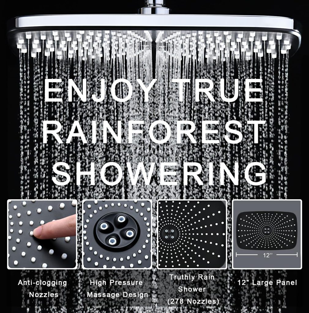 - Rainforest experience in home, our high pressure shower heads has 278 spray nozzles committed to provide smooth rain feeling. You can enjoy a truly rain showering experience which leaves you a feeling of relaxing and comfortable