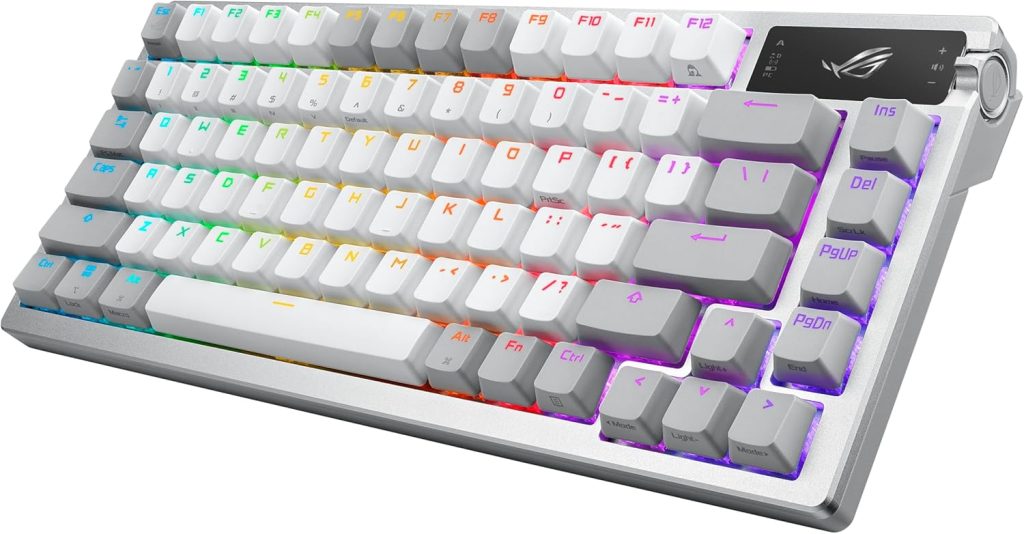 - Enhanced typing experience: Pre-lubed keyboard stabilizers produce less friction for smoother keystrokes and stability for longer keys; durable ROG PBT doubleshot keycaps offer a premium feel and shine resistance