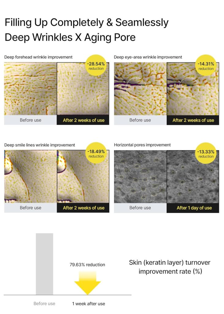 • Infused with 0.1% retinal, the advanced form of retinol, combined with A-Shot, designed to directly penetrate pores and enhance absorption, delivers retinal deep into the skin to target wrinkles and enlarged pores, promoting smoother and firmer skin.