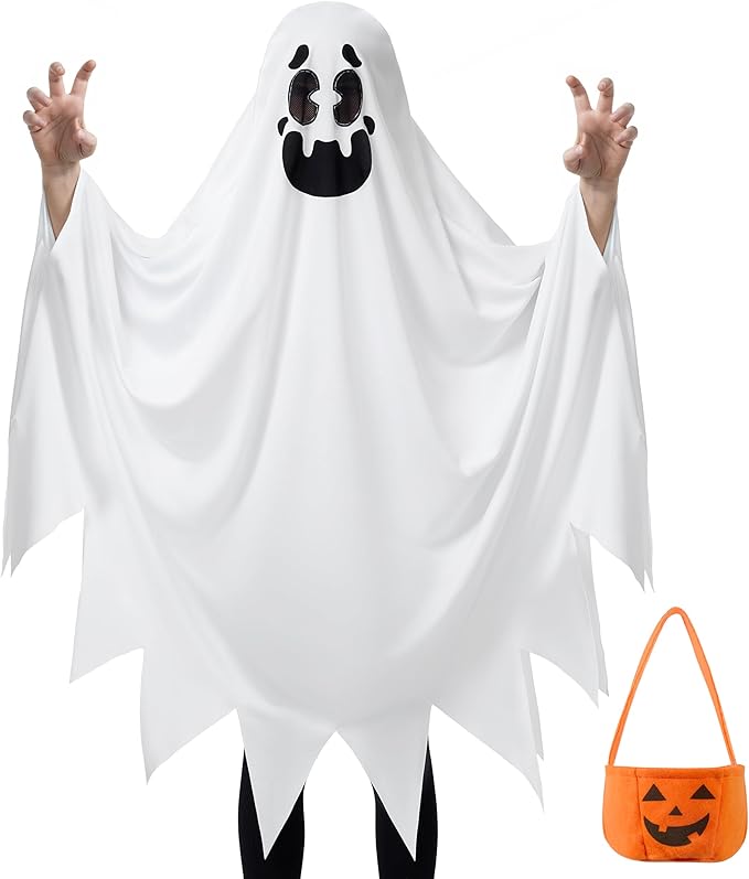 - Cute and Friendly Lost Soul Costume Includes Smile Ghost Robe (1 Cape) and Spooky Pumpkin Basket