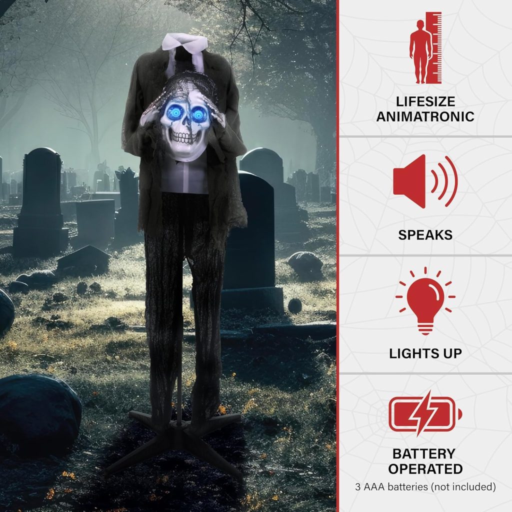What I really love about this decoration is the attention to detail. The creepy design, glowing lights, and eerie sounds instantly transform your space into a haunted scene. Plus, it’s surprisingly easy to set up and lightweight enough to move around until you find the perfect spot.