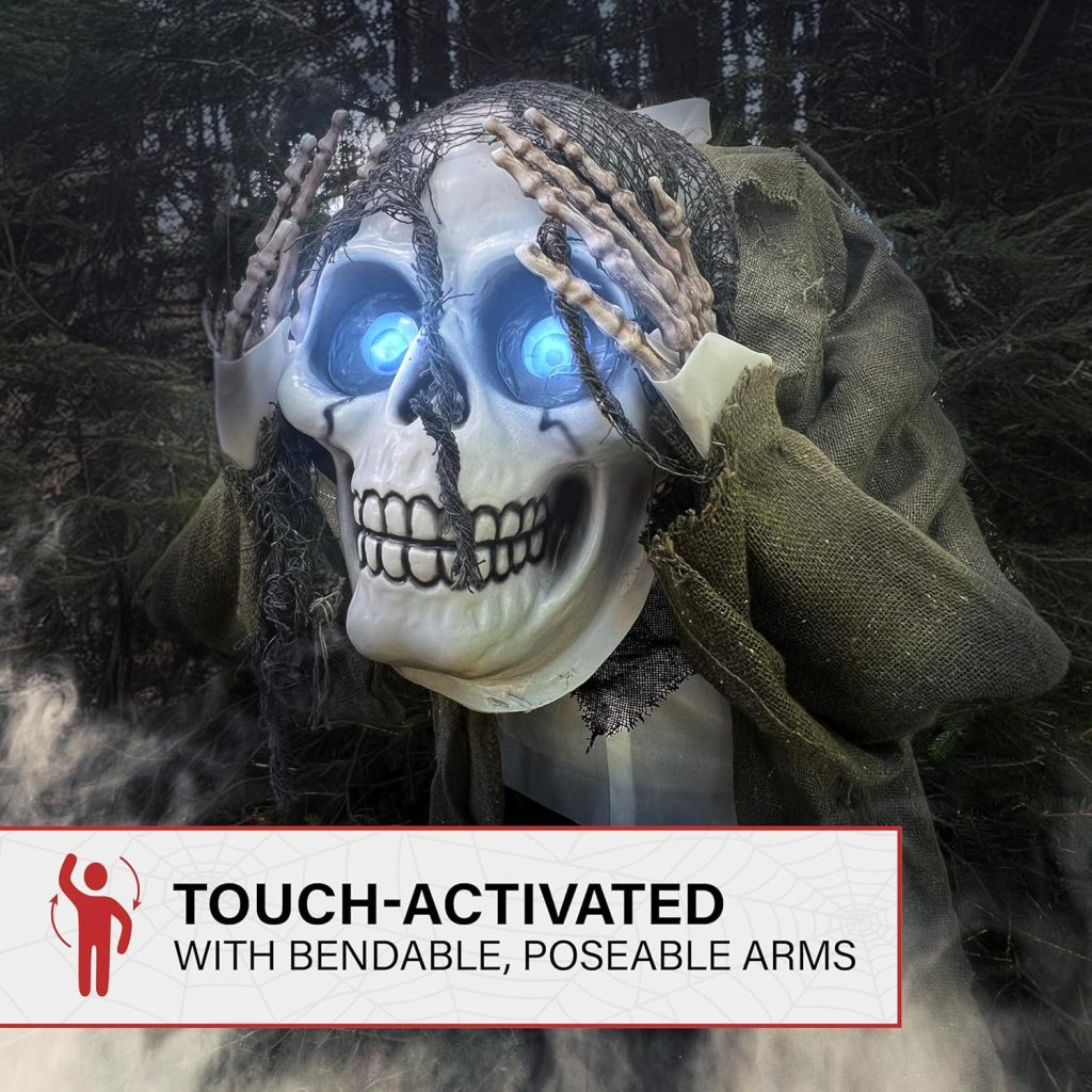 • Touch Activated: Place your figure at your front door or along your walkway to delight and frighten trick-or-treaters when it comes alive with a touch or bump