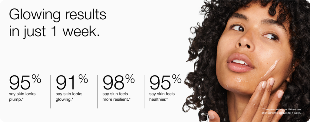 Use oil-free moisturizer morning and night on clean skin or use over makeup as a dewy highlighter. Can also be used as a 5-minute mask.